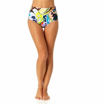 For stand out beach style, our Fold Over High Waist Shirred Bikini Swim Bottoms is a must-have for your swimwear collection. The vibrant band adds a pop of color to these high waisted swim bottoms, which will give you a flattering fit that will look complete with our Tankini Swim Top. Flip up the band for extra coverage around your waist and hips. Our Flounce V Neck Tunic Swimsuit Cover Up works well with these bottoms too