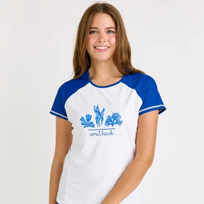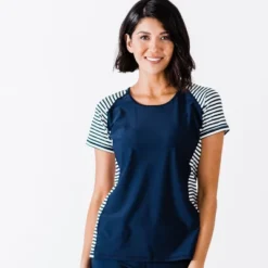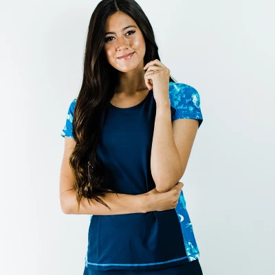 Beat the heat and the sun with the Loose Fit Adele Swim Top! This stylish crew neck with slimming adjustable side ruching is perfect for the pool, beach, or running around on a sunny day – did we mention it also has UPF 50+ sun protection? Sold as top only. Pair with your favorite swim bottom to complete the look.