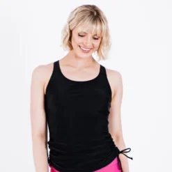 The Maya Swim Top is perfect for a sunny day. The round neckline, racerback cut and built-in bra (with removable cups!) offer stylish comfort and support while the adjustable side ruching gives you a better fit. Sold as top only. Pair with your favorite swim bottom to complete the look.