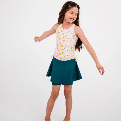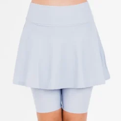 The Midi Swim Skort is flattering on all body types thanks to its high waist design and mid-thigh length skirt. Complete with a wide waistband for a slimming effect and attached leggings hit you right above the knee for added coverage.