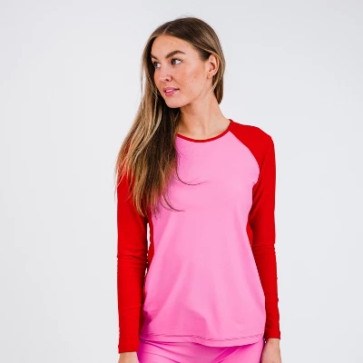 Achieve the perfect balance between style and function with the Raglan Color Block Rash Guard. This long-sleeve rash guard offers a relaxed fit with a sleeve length of 58cm and a top length of 63cm in size small, ensuring maximum comfort and ease of movement. If you find yourself between sizes or are uncertain, we advise sizing up for the best fit. The round neckline contributes to its classic aesthetic, while the absence of a built-in bra provides the versatility to wear it over your favorite swim bra. Side ruching adds a chic twist, creating a subtly cinched look that flatters your silhouette. Made from a high-quality blend of 82% Nylon and 18% Spandex, this rash guard is both durable and flexible, ideal for a range of water activities. Not to be outdone, the UPF 50+ sun protection ensures that you stay safe from harmful UV rays, and the quick-dry feature adds an extra layer of convenience. Whether you’re catching waves or lounging by the pool, the Raglan Color Block Rash Guard has you covered in both style and comfort.