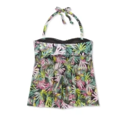 Create a refreshing look for beach or poolside fun by wearing the Flyaway Bandeau Tankini Top from Kona Sol™. This bandeau tankini top is covered with multicolored floral print for an eye-catching look that’s perfect for beach vacations or just relaxing by the beach or pool. Made with a mix of soft and stretchy fabric with soft lining, this printed tankini top helps keep you comfortable throughout the watery fun, and it comes with detachable straps with a behind-the neck tie for an adjustable fit. Plus, sewn-in cups offer comfortable coverage. Simply pair it with a floral print or solid-colored swim bottom to create a complete, chic look.
