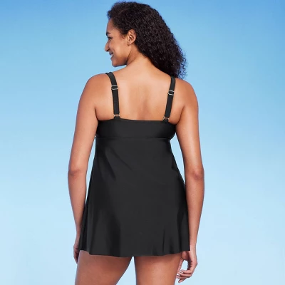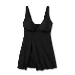 For a modest yet playful swimwear piece, the Side Slit Swim Dress from Kona Sol™ is sure to hit the mark. This swim dress provides full torso and seat coverage, and hits at mid-thigh so you even get some leg coverage. A side slit, shirring along the bust and a deep V-neckline add playful touches to the modest cut, and the V-neckline is balanced out by sewn-in cups that provide extra bust coverage. Adjustable straps add the finishing touch, helping you to find the most comfortable fit.