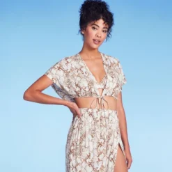 Stay in style while flaunting your standout look by wearing the Tie-Front Short-Sleeve Cover-Up Crop Top from Shade & Shoreâ„¢. This short-sleeve cover-up top features snake print in tan and cream hues for an elegant look. The deep V-neckline with tie front elevates the look, while the 100% rayon fabric provides all-day comfort. Simply pair it with the snake-print bottom to complete the look.