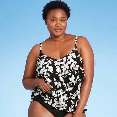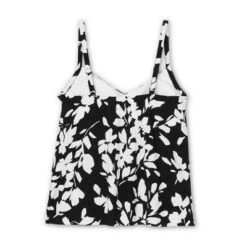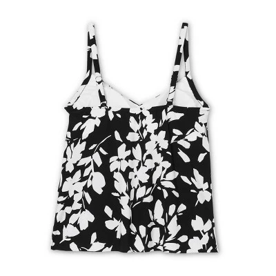 Show off your fashionable side with this tankini at your next great escape. This Aqua Green swim top features a subtly flared design, with a relaxed, but feminine and sweet fit. The modest plunging V-neck flows into cascading layers that will definitely catch everyone’s eye, and pairs perfectly with the high waisted brief. For a more customizable fit, this swimsuit has removable cups and adjustable straps.