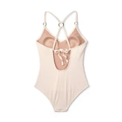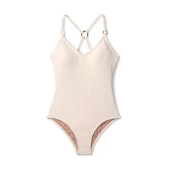 Make a chic addition to your swimwear wardrobe with this Wide Ribbed Ring Medium Coverage One-Piece Swimsuit from Kona Sol™. Made from soft, lightweight fabric with full lining and a touch of spandex, this one-piece swimsuit offers stretchy comfort in and out of the water. Sewn-in cups offer confident coverage, while the ribbed construction, ring straps and crisscross back finish off the look with effortless style.